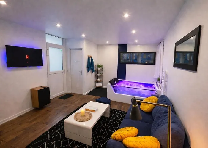 La Bulle Bleue Jacuzzi Appartement Épernay van 35 m² is gelegen op slechts 1 km afstand van Chapelle de l'hopital Auban-Moet en op ongeveer 750 meter afstand van Theatre Gabrielle Dorziat. Het appartement heeft een bubbelbad en ligt in de nabijheid van het Champagnehuis Georges Cartier.